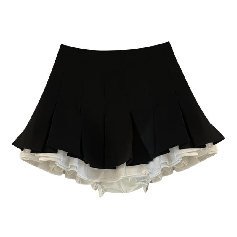 A playful black mini skirt featuring ruffles, pleats, and high-waist design. Inspired by Korean and Japanese fashion, this A-line skirt is versatile, flattering, and easy to pair with any top, making it perfect for casual outings, parties, or cute everyday looks.
