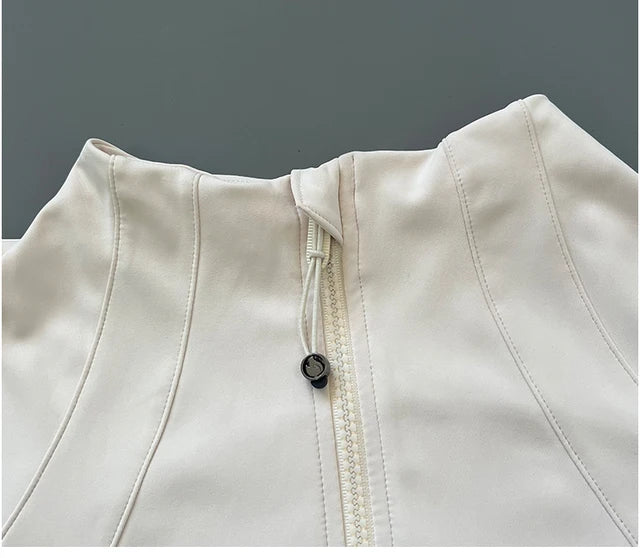 Stay comfortable and stylish during every workout with this athletic slim-fit running jacket. Made from quick-drying, breathable fabric, it features a full zipper, thumb holes, and a flattering fit designed for yoga, fitness training, and outdoor runs. Lightweight yet functional, it moves with you for peak performance.